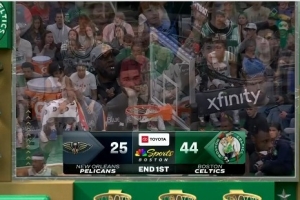 体育资讯4月11日讯 NBA常规赛,凯尔特人首节44-25领先鹈鹕。