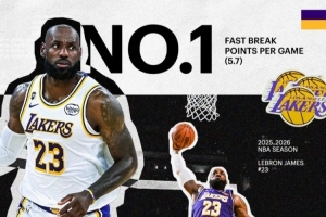 场均5.7分!湖人官推晒海报祝贺詹姆斯场均快攻得分联盟第一